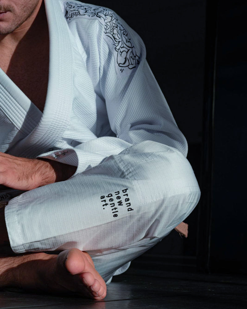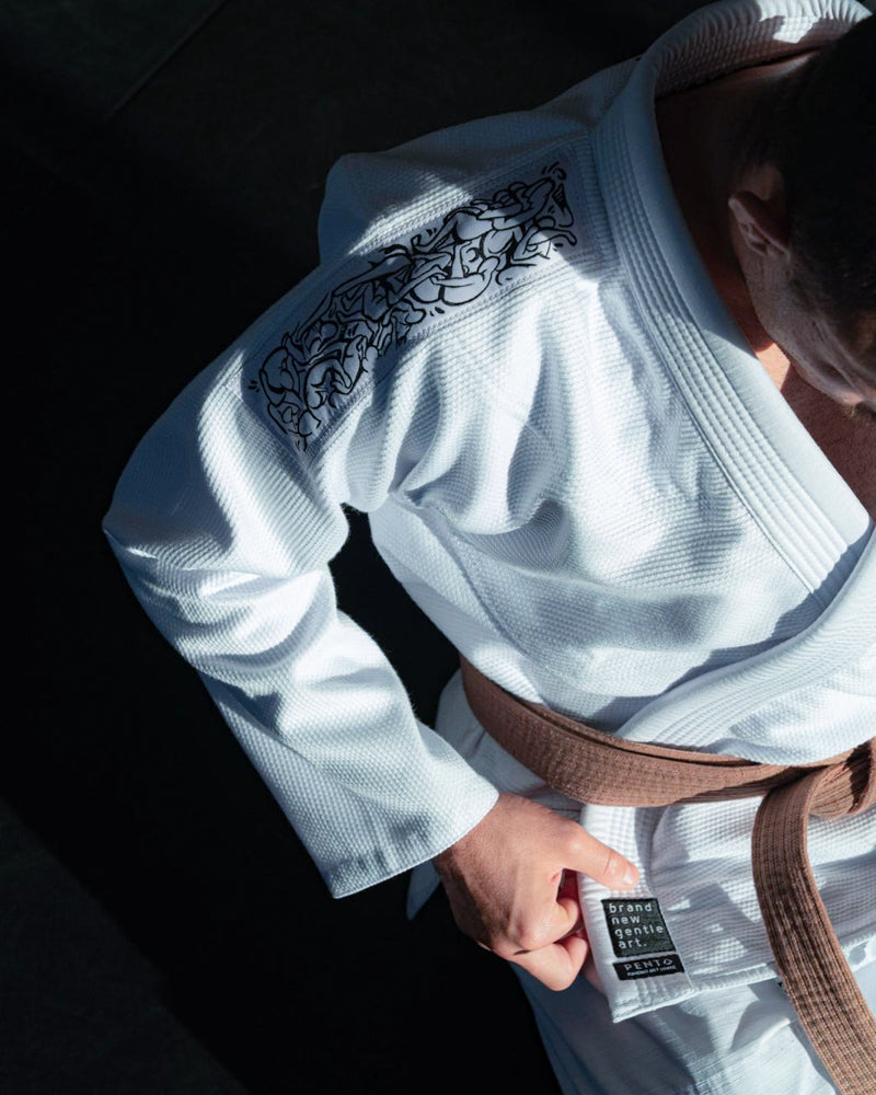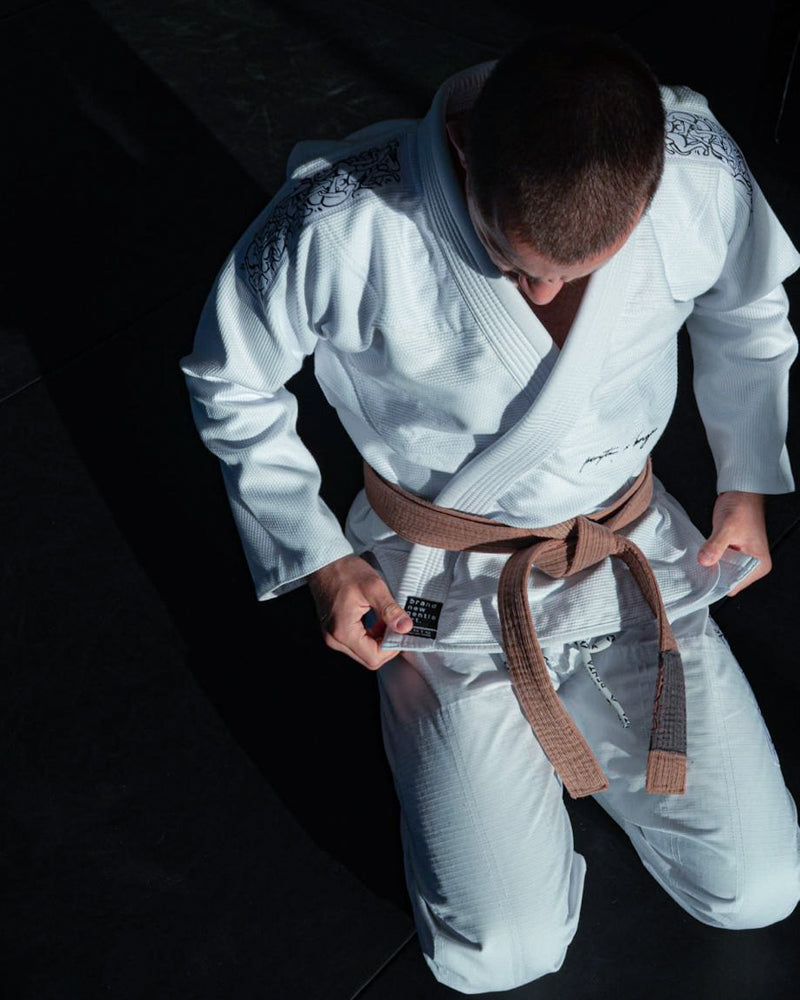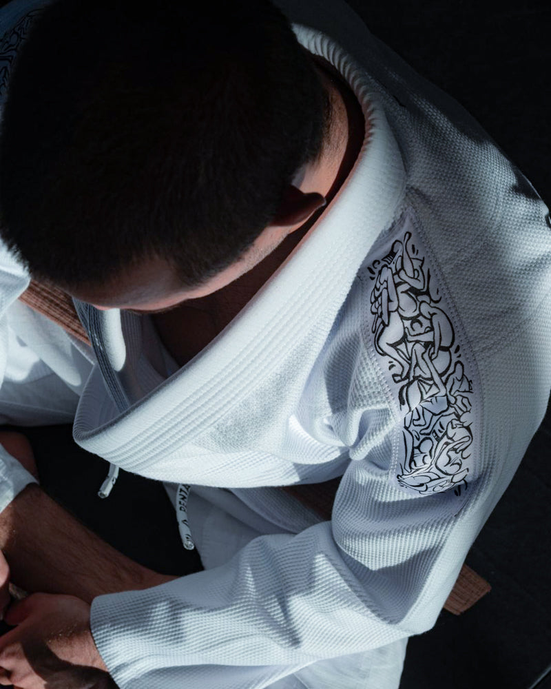 Inspirado no estilo de vida que o jiu-jitsu nos traz, este kimono celebra a ideia de evolução contínua, consistência e respeito pelo corpo e pelo caminho a percorrer. Não é sobre ganhar hoje a qualquer custo, é sobre continuar amanhã.